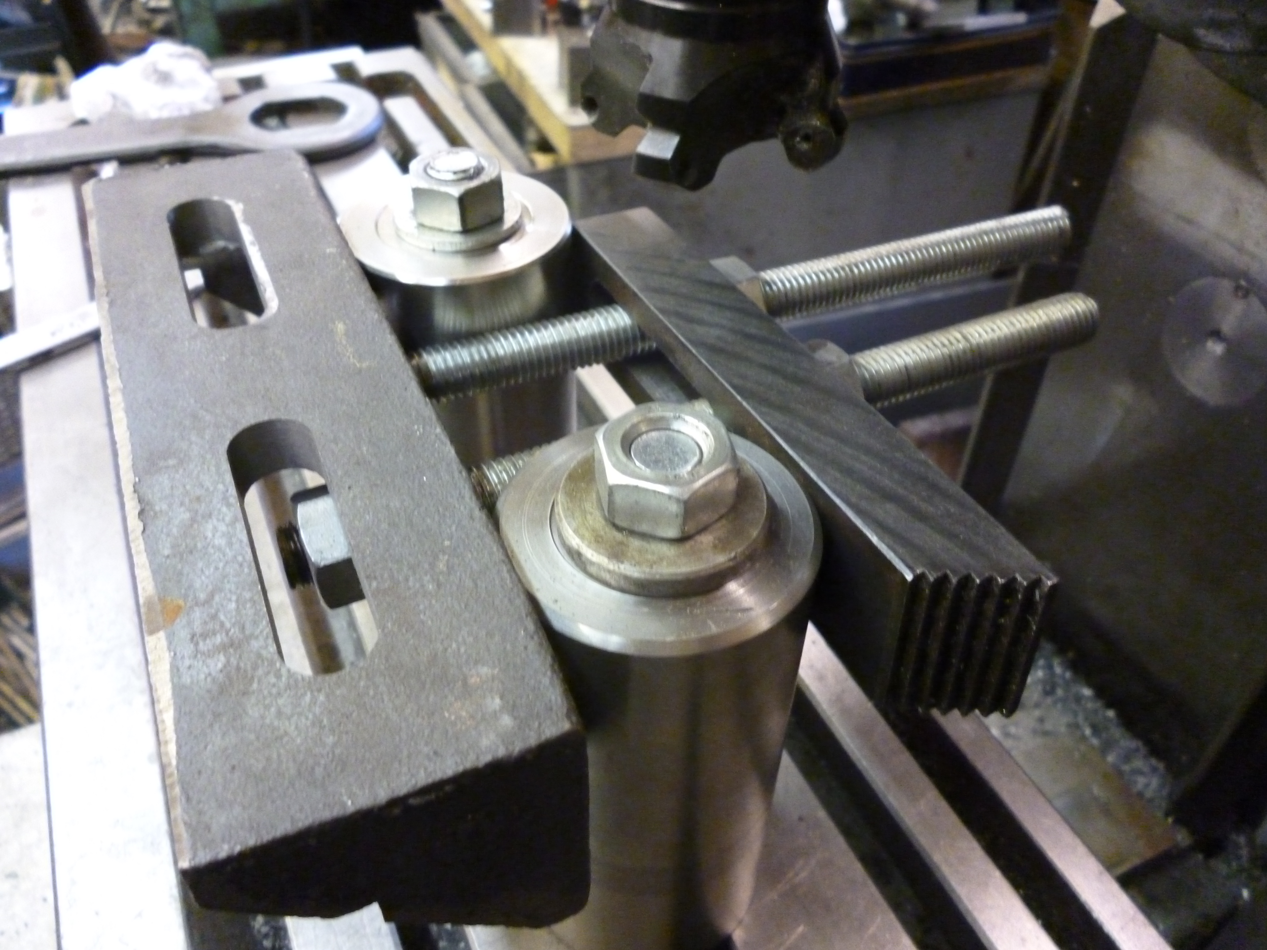 I am looking for a method of holding a slab of aluminium to the mill table so I can skim it flat with a fly cutter.