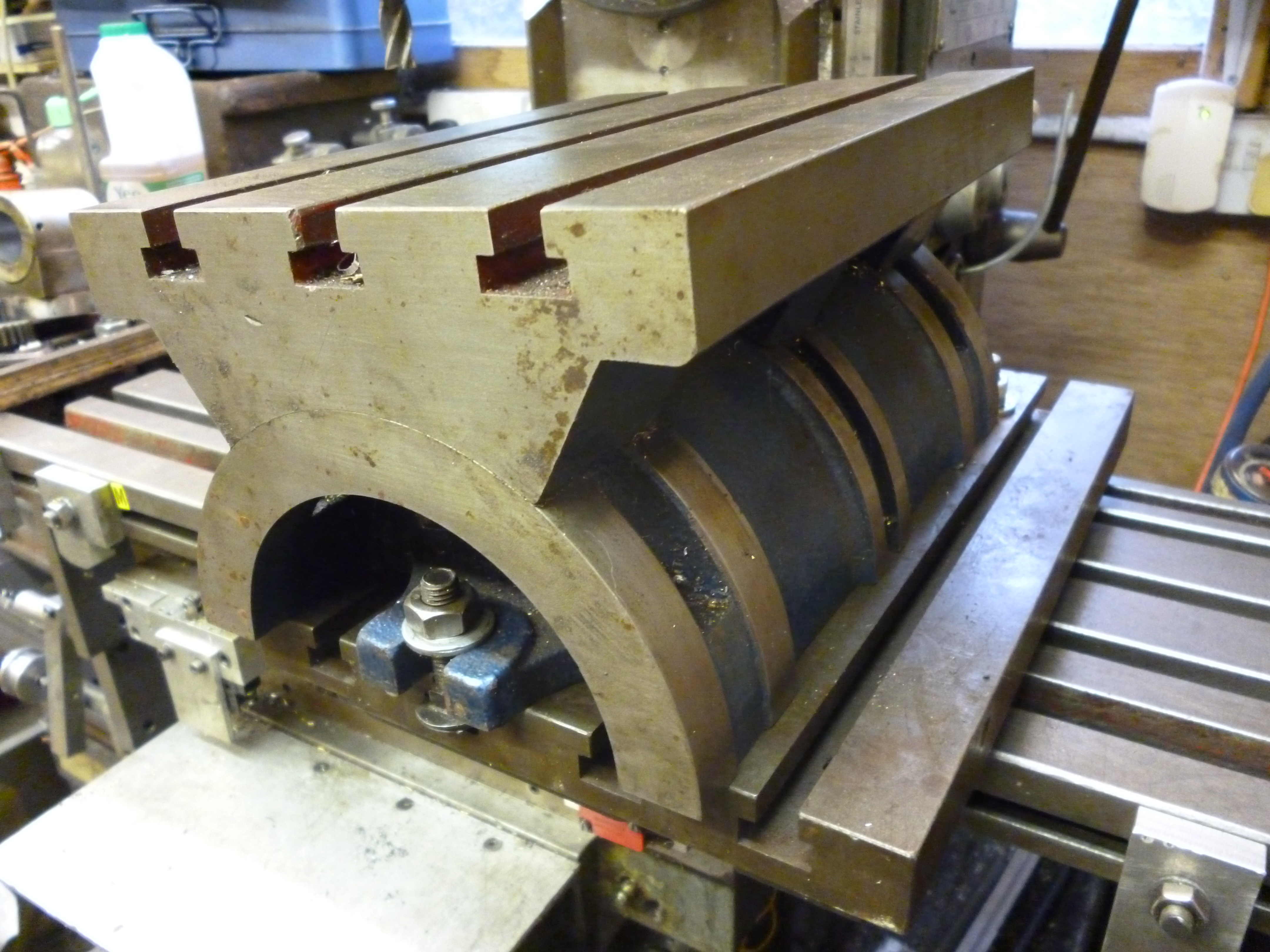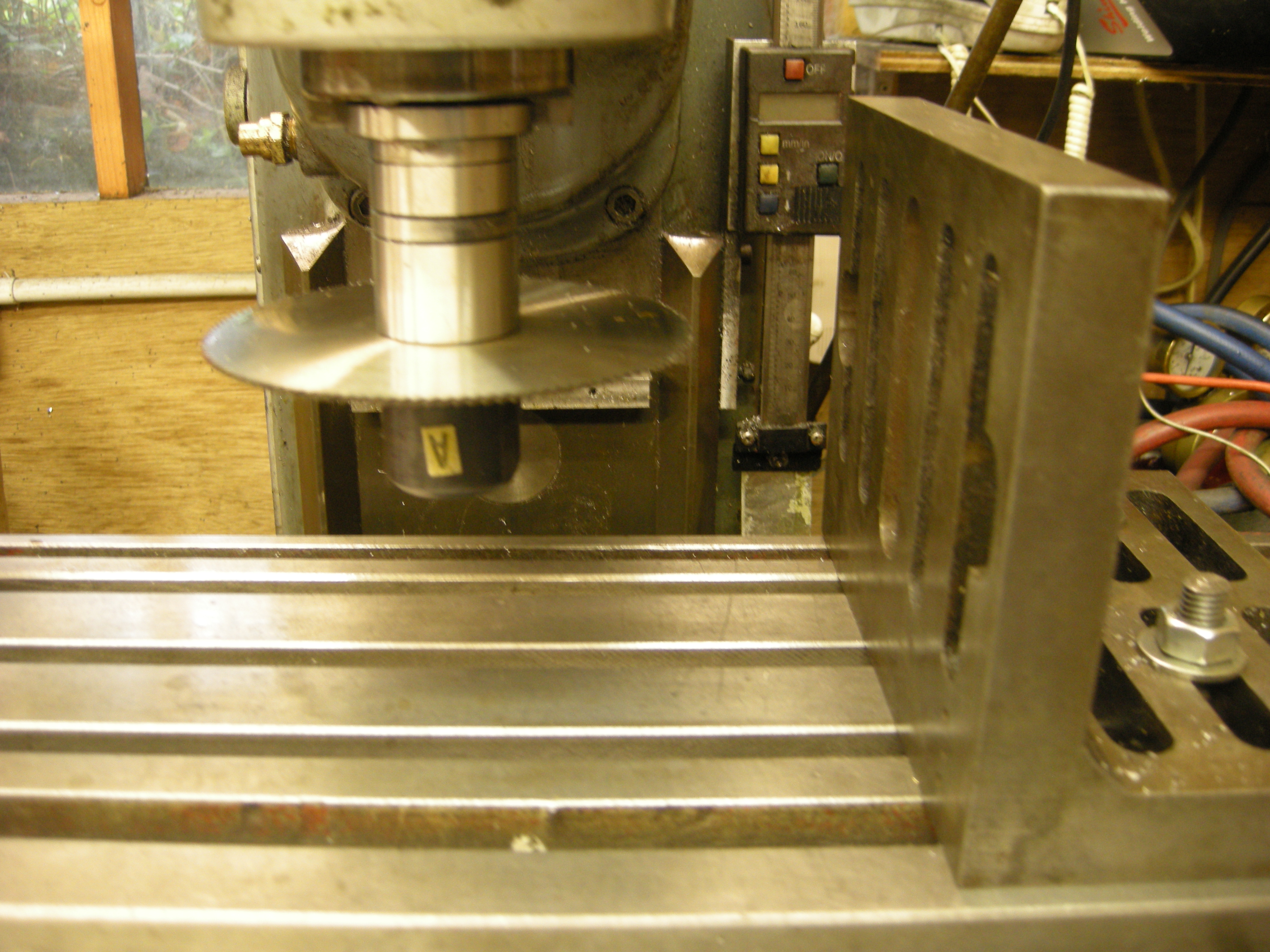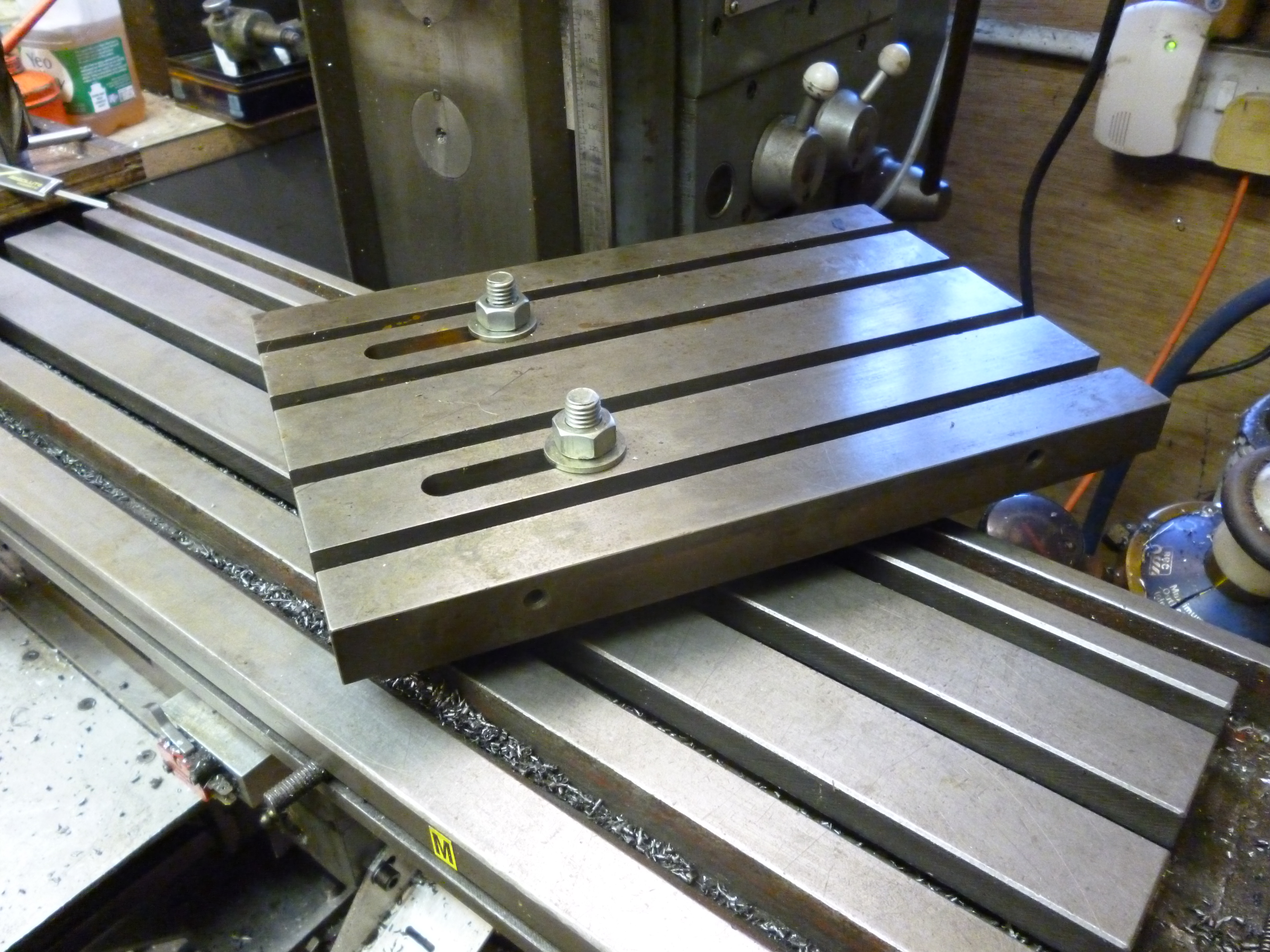 Workpiece fitted to the back of the milling table where the vertical head rotates on the top of the column