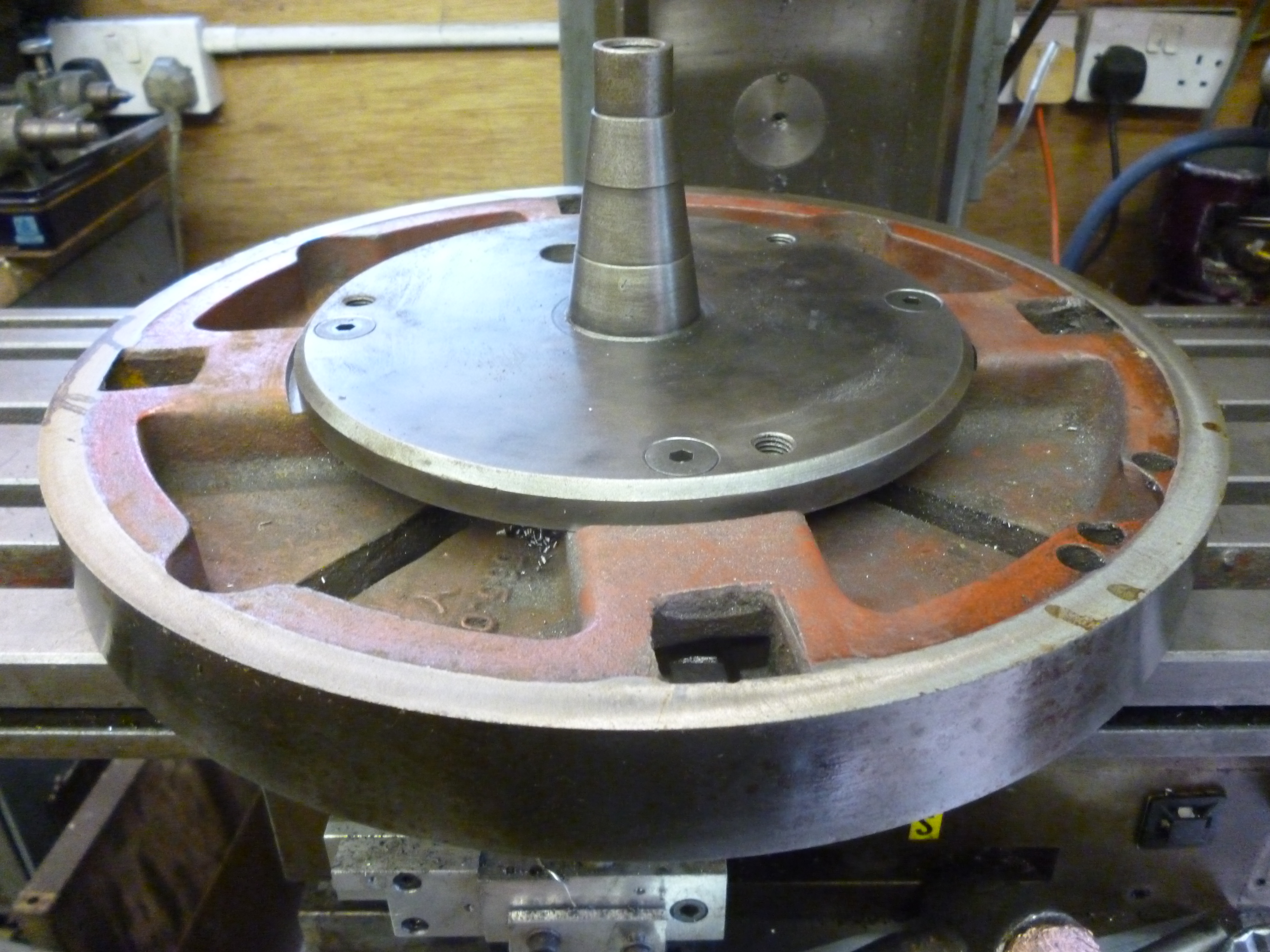 The example in the previous method was machining a faceplate from a large Colchester lathe to make a “faceplate” to fit the horizontal arbor on a vertical milling machine.