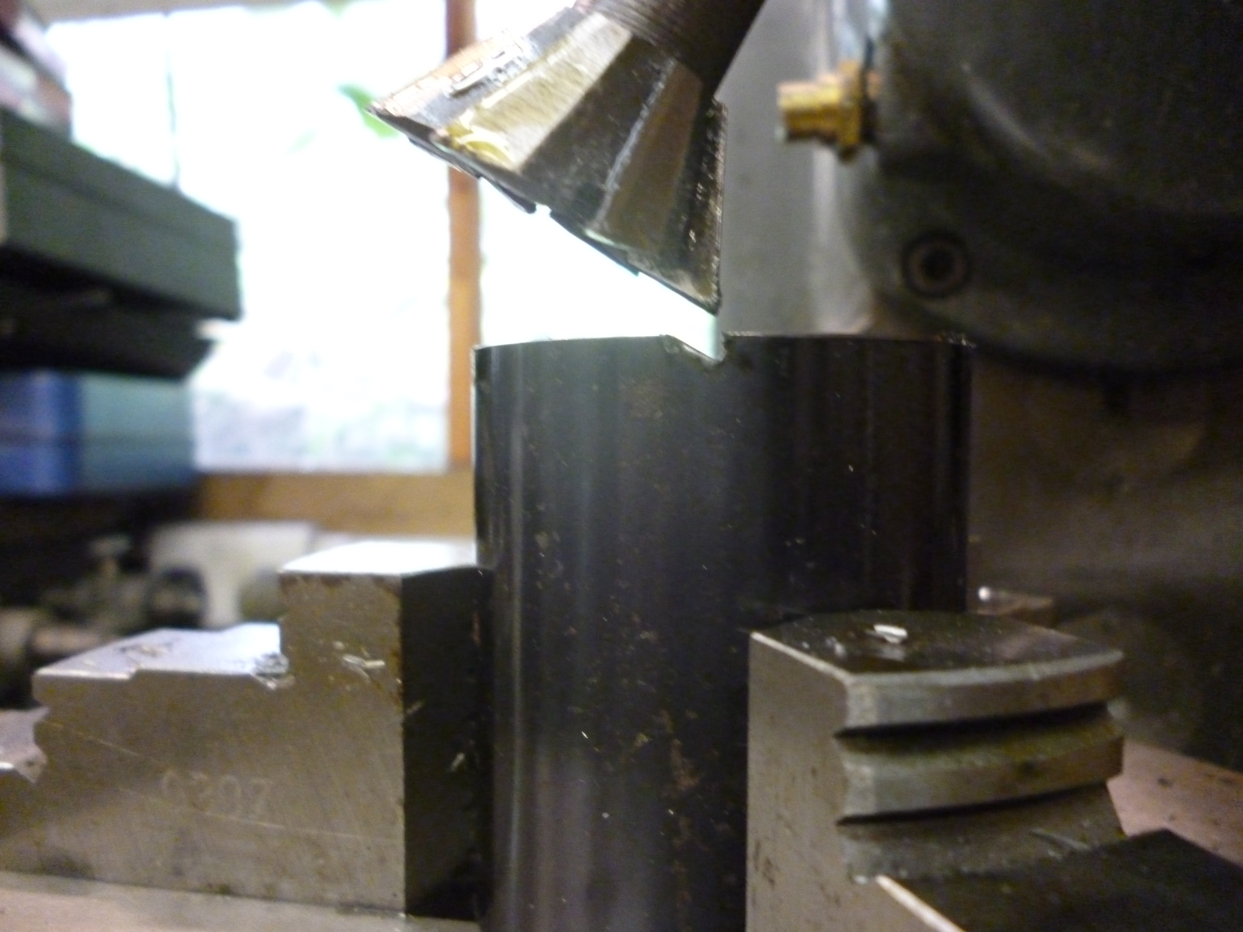 One problem of using a 3-jaw chuck is very often a cylinder cover may need a circle of holes but the cover itself is not round and cannot be held in a 3-jaw chuck. One solution to this is to use a 4-jaw chuck instead.