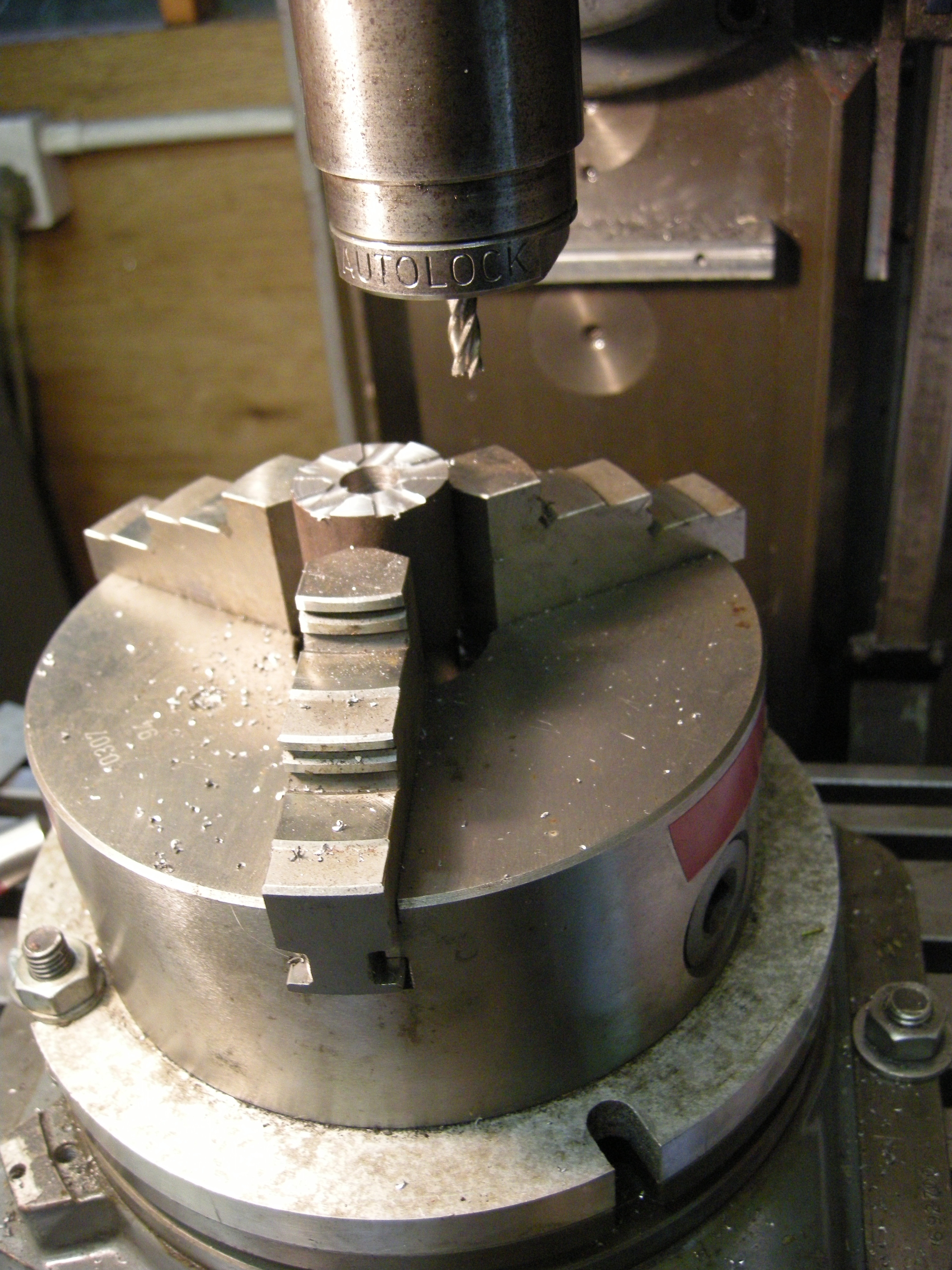 Milling – workholding – rotary table with a three jaw chuck