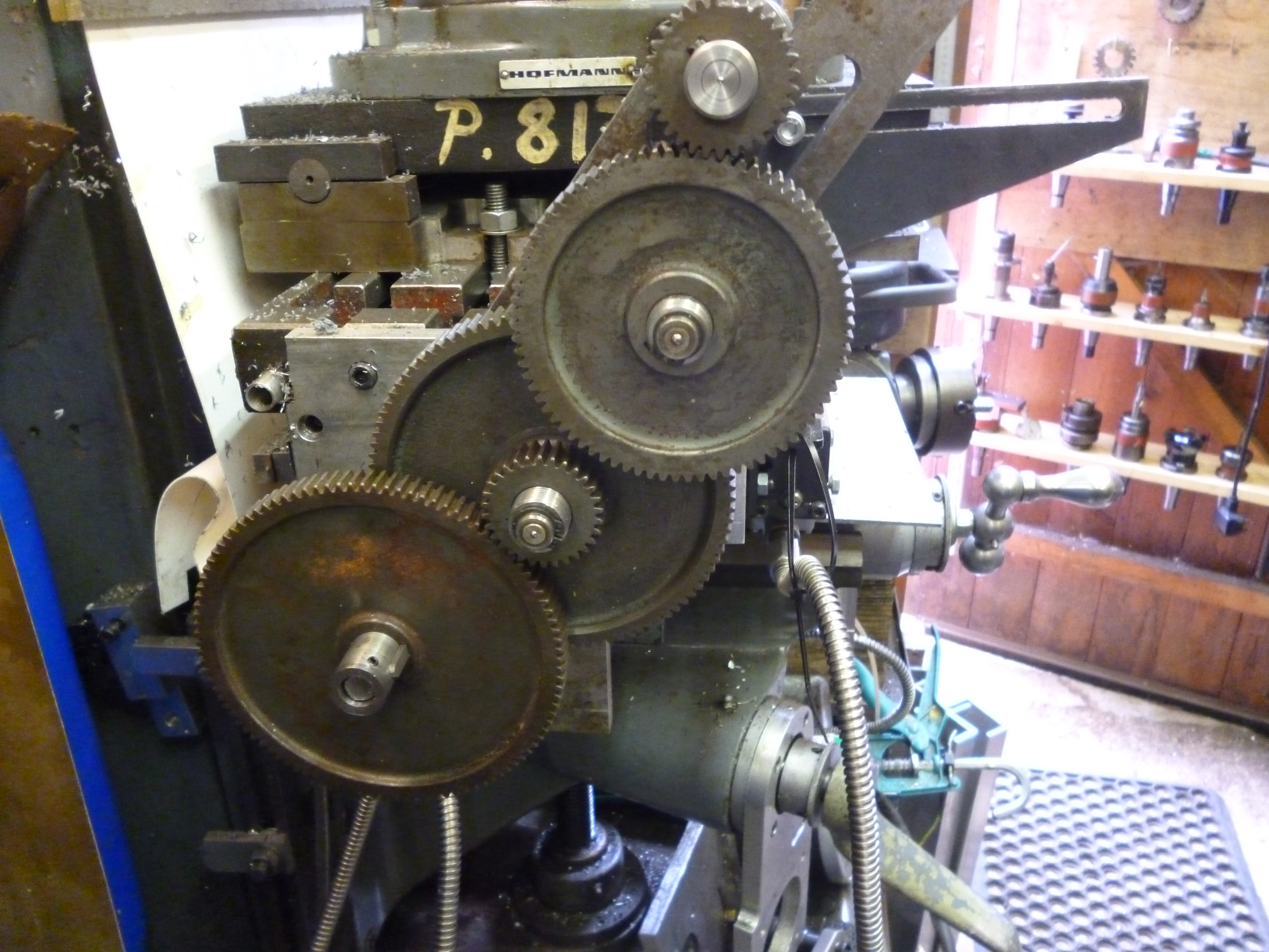 In this case the gear train has been set up using the parts that go with the dividing head.