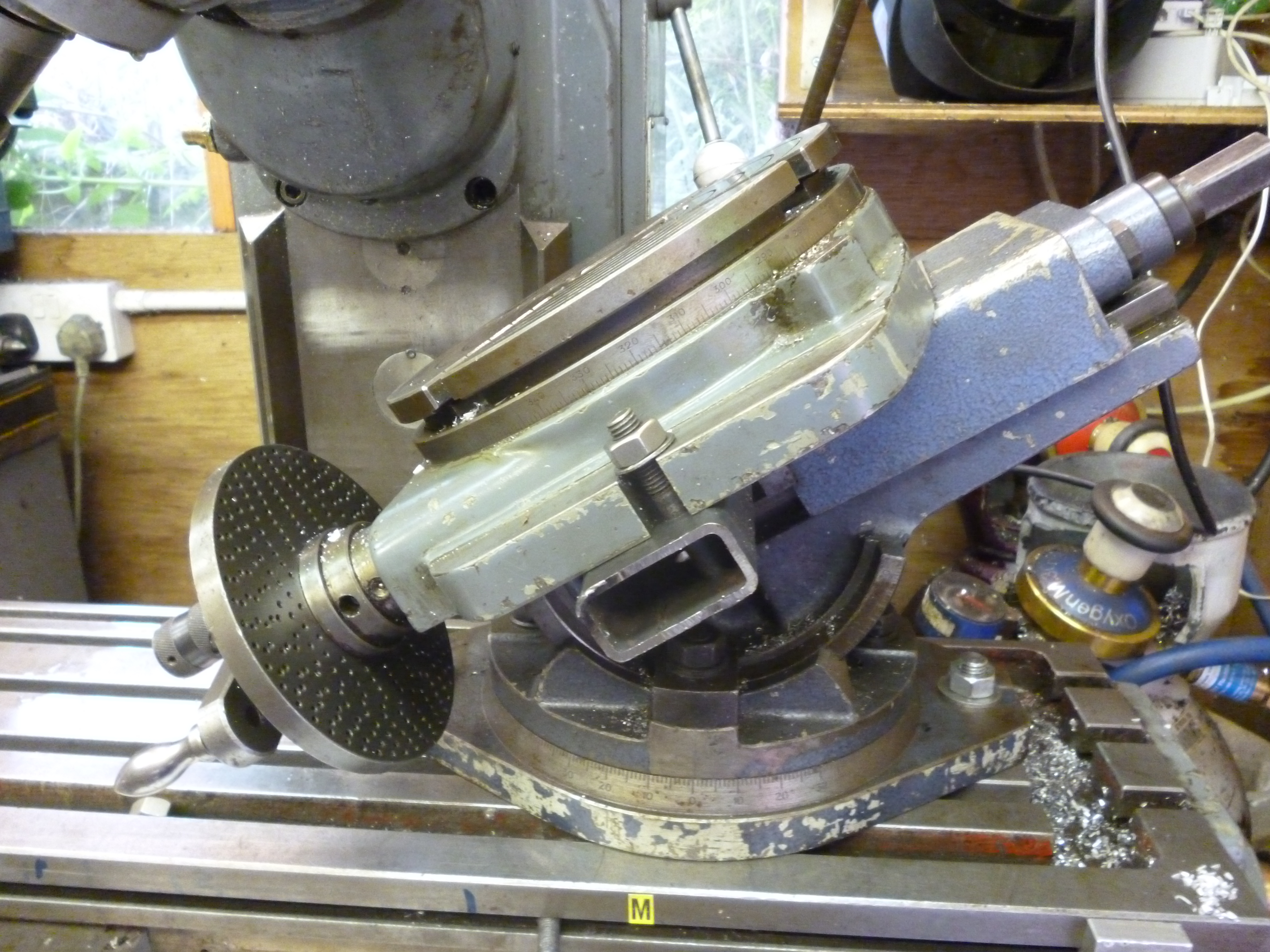 This mainly works if the rotary table is in a nearly horizontal position. As it reaches towards the vertical the vice or the vice can clash with the vertical head. The other snag is the lack of rigidity.