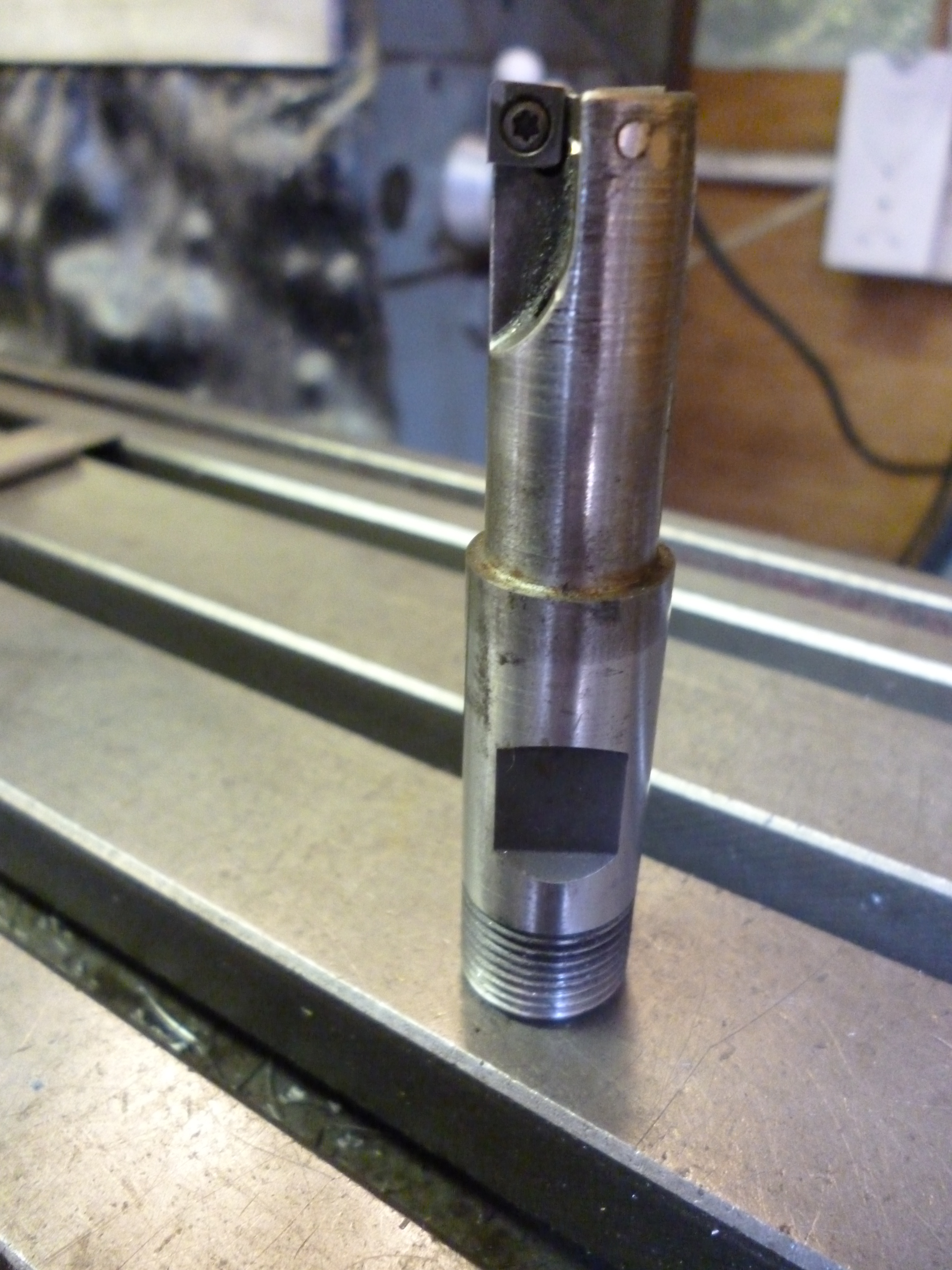 .This has three flutes one of which passes through the centre so its a bit like a cross between an endmill and a slot drill.